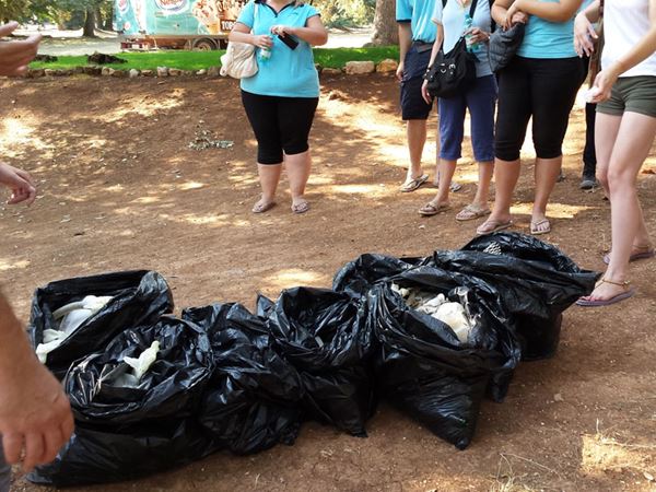 There were 18 Gulliver volunteers participating in the action joined by swimmers and beach visitors (locals and foreigners). The amount of trash on the beach was in no way obvious. We collected a surprising amount of waste in two hours, altogether 45 kg of trash, including plastic bags, glass, condoms, bottles and dead animals. Since the beach is right next to the park we unfortunately also found a big amount of human faeces.